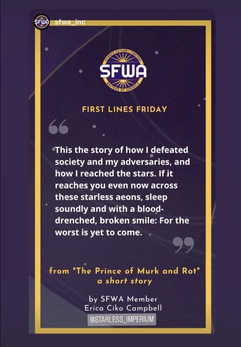 The Science Fiction and Fantasy Writers of America has featured Ciko’s creative work, describing it as, “Ligotti Meets Lovecraft in Space” and “Bleeding-Edge.”
