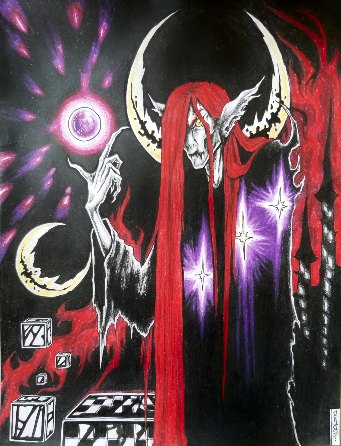 “W-what is it?” She whimpered, her tears reflecting the timeless essence of ethereal mysticism as the swirling red nebulae flickered back to life below.